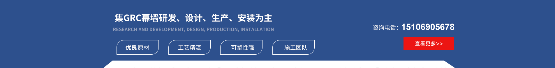 GRC構(gòu)件具有高強度、高韌性、耐水.耐火.輕質(zhì)等優(yōu)勢,可應(yīng)用于墻板、吊頂板、屋面板,永久性模板及外裝飾構(gòu)件等,既能縮短施工時間又節(jié)約